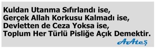 GERÇEKLER DOĞRU VE ACI OLUR. İLTİFATLAR SAHTE VE YALAN. GERÇEKLERDEN KAÇANLAR, İLTİFATLARA SIĞINANLAR, ACI SONDAN KAÇAMAZLAR. KURTULUŞ GERÇEKLERLE YÜZLEŞMEKDEN, İLTİFATLARDAN UZAK DURMAKDAN GEÇER. AAteş