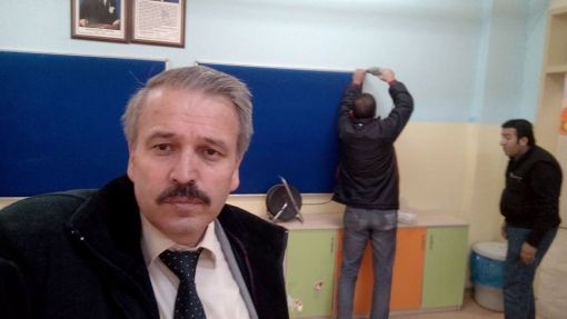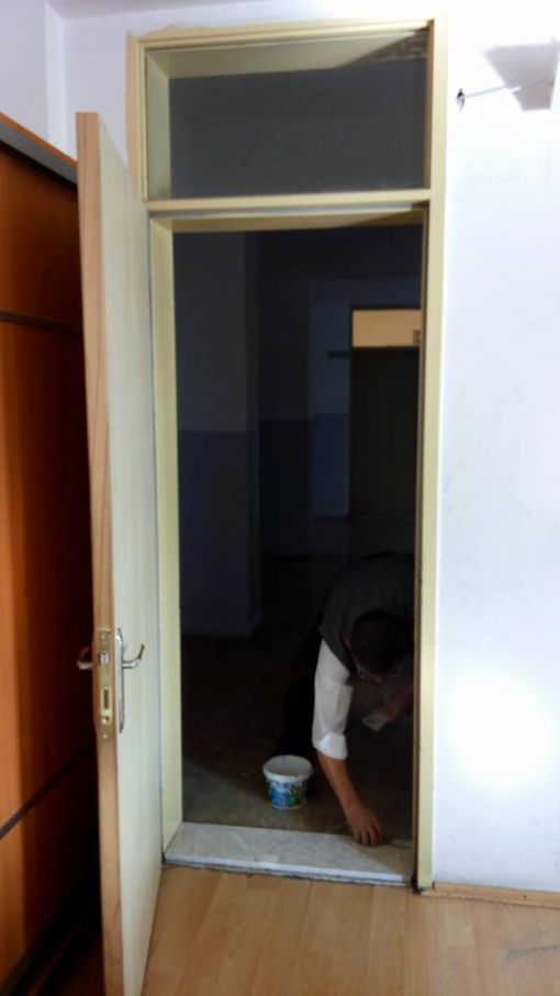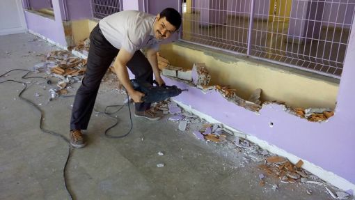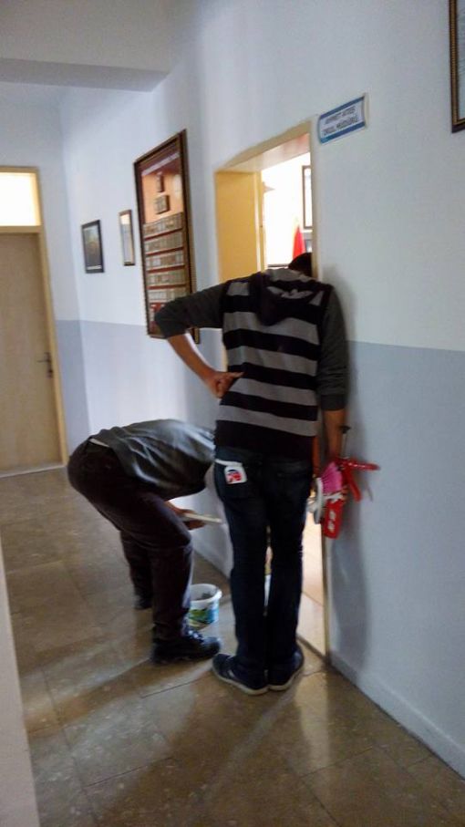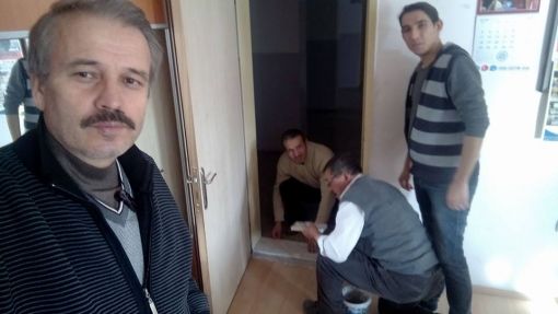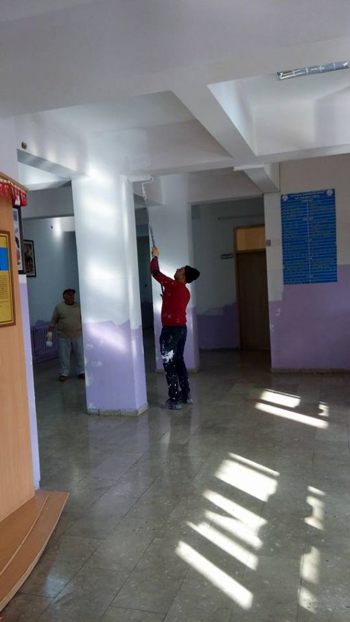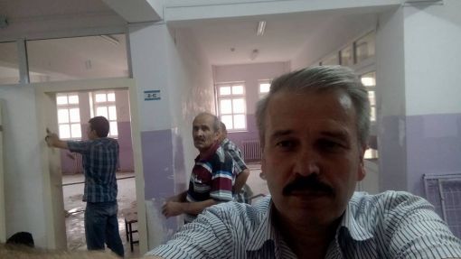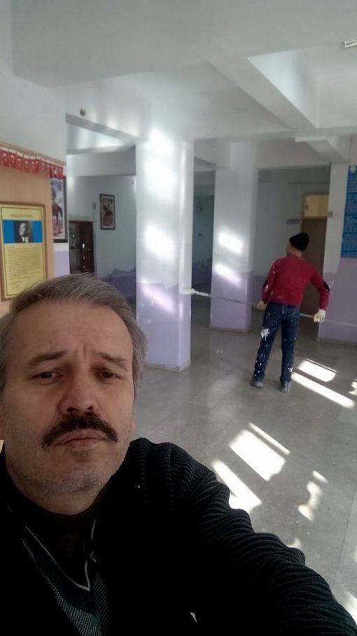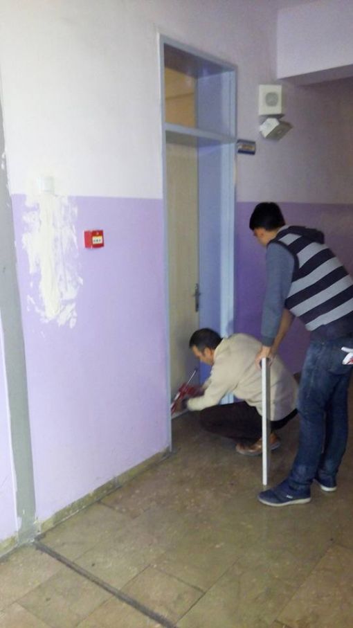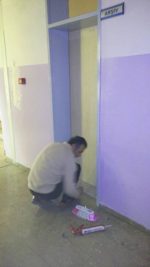 An İtibari ile 27.12.2015 Saat 14.00 İdari odaların kapı altlarına mermer döşenirken ve Koridorlara Badana Boya Yapılırken.....Mermer Ustamız Öğrenci Velimiz Nejdet Şişman Ve