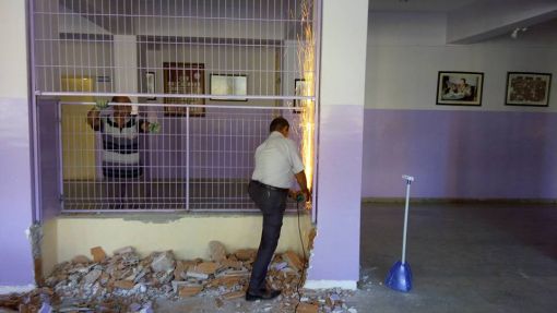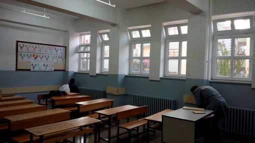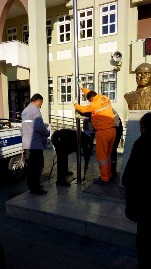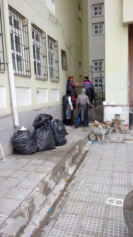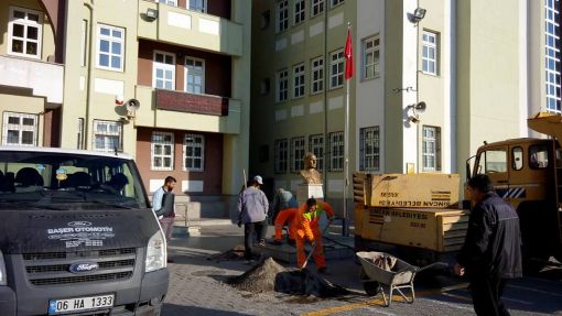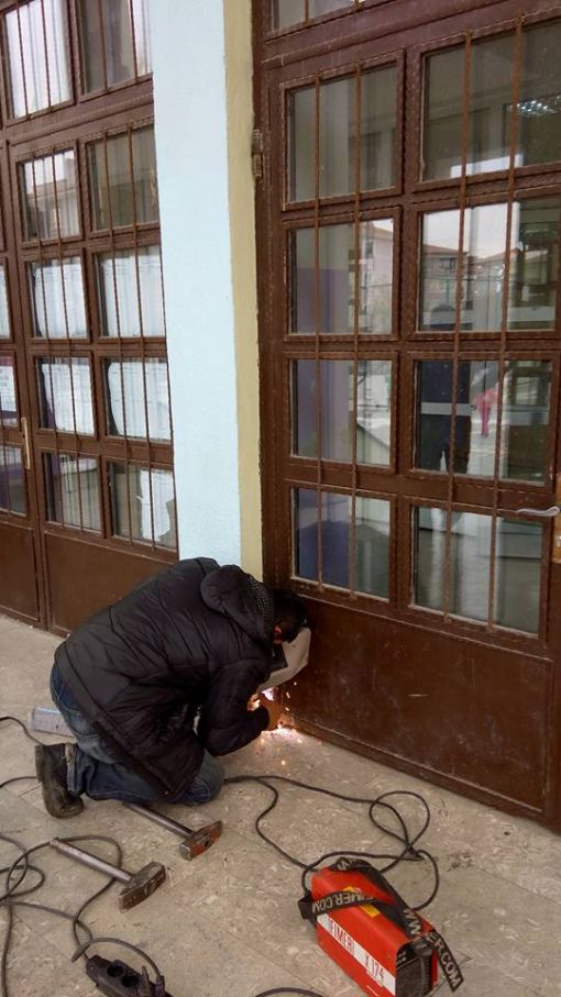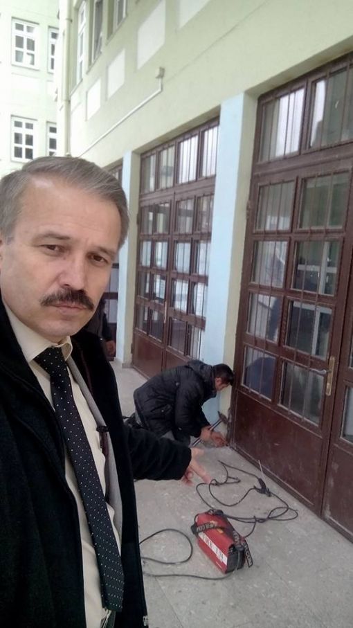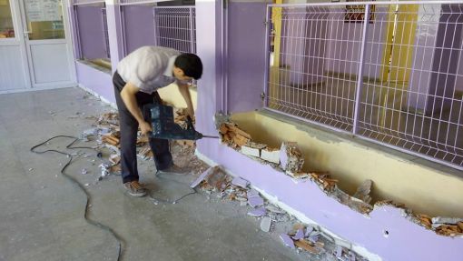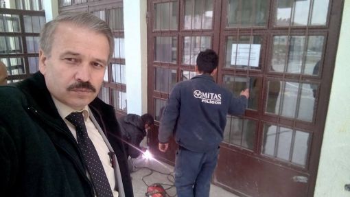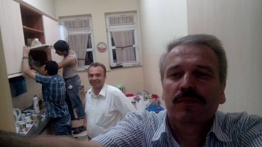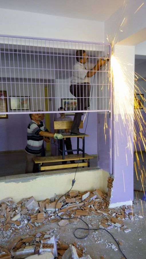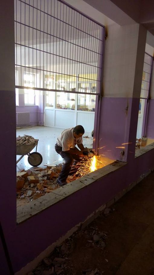 An İtibari ile 27.12.2015 Saat 14.00 İdari odaların kapı altlarına mermer döşenirken ve Koridorlara Badana Boya Yapılırken.....Mermer Ustamız Öğrenci Velimiz Nejdet Şişman Ve
