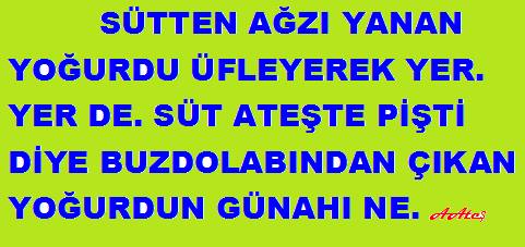 SÜTTEN AĞZI YANAN YOĞURDU ÜFLEYEREK YER. YER DE. SÜT ATEŞTE PİŞTİ DİYE BUZDOLABINDAN ÇIKAN YOĞURDUN GÜNAHI NE.AAteş
