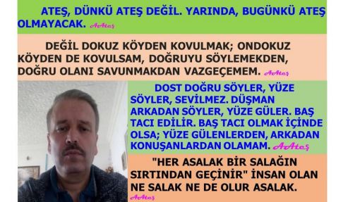 DEĞİL DOKUZ KÖYDEN KOVULMAK; ONDOKUZ KÖYDEN DE KOVULSAM, DOĞRUYU SÖYLEMEKDEN, DOĞRU OLANI SAVUNMAKDAN VAZGEÇEMEM. AAteş